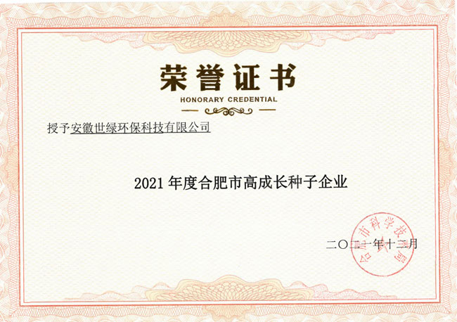 2021年合肥市高成長(zhǎng)企業(yè)認(rèn)定結(jié)果正式出爐啦!近日,合肥市科技局委托各區(qū)管委會(huì),對(duì)認(rèn)定企業(yè)發(fā)放了認(rèn)定證書(shū)。安徽世綠環(huán)保榮獲2021年合肥市高成長(zhǎng)種子企業(yè)。